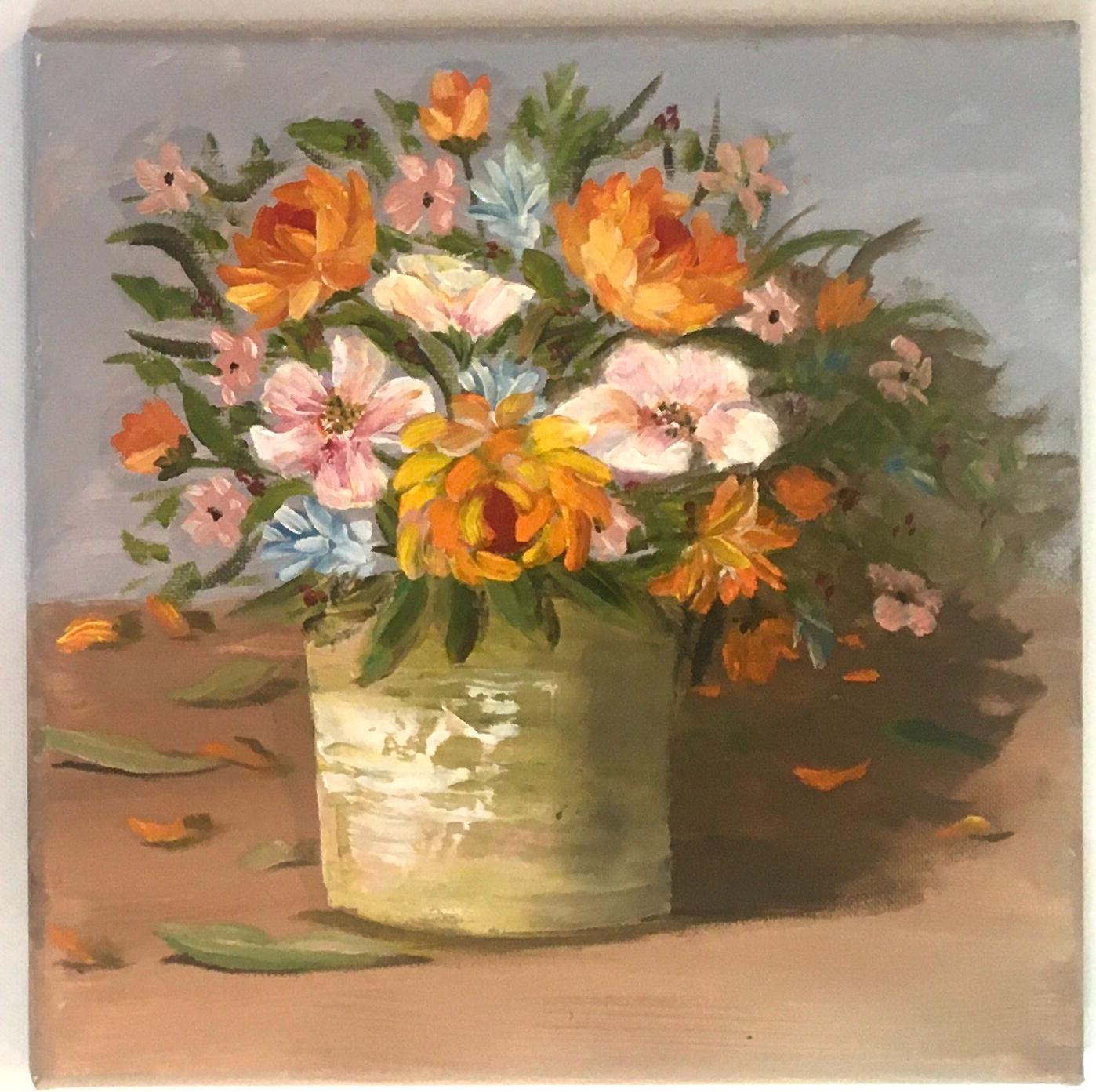 10x10 Original oil painting flowers in a vase art ready ooak wall hanging gift