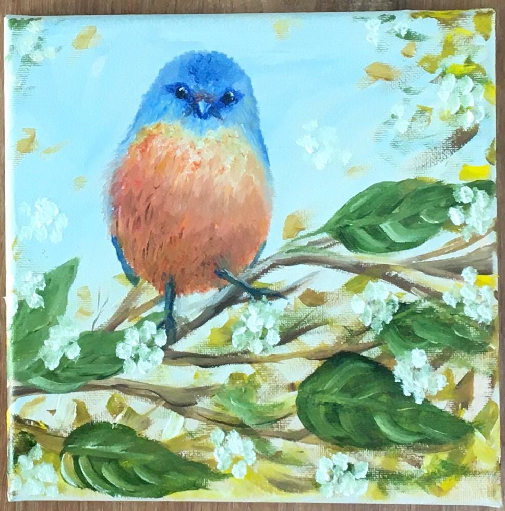 Original oil painting cute bird of New England art ready ooak wall hanging gift