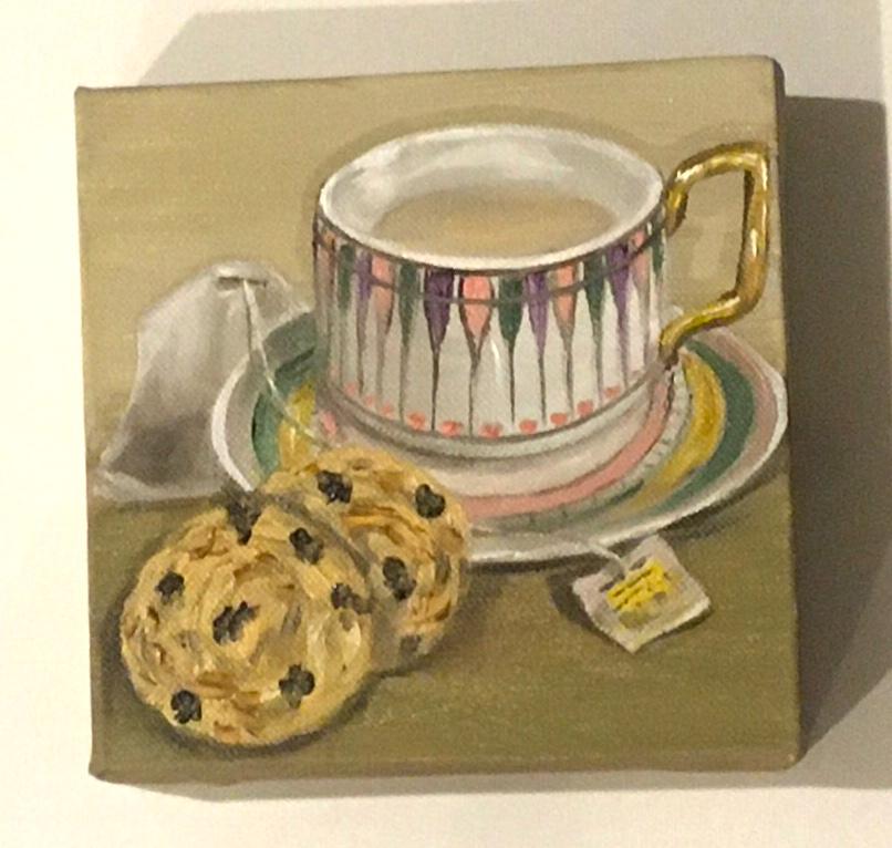 Tea and cookies 6x6 inches Original oil painting art wall hanging